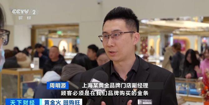 上海某黄金品牌门店副经理 周明源:顾客必须是在我们品牌购买的金条才可以进行回购。需要顾客持有原产品的发票、身份证、银行卡,还需要进行一系列的鉴别,比如说火烧、剪开。
